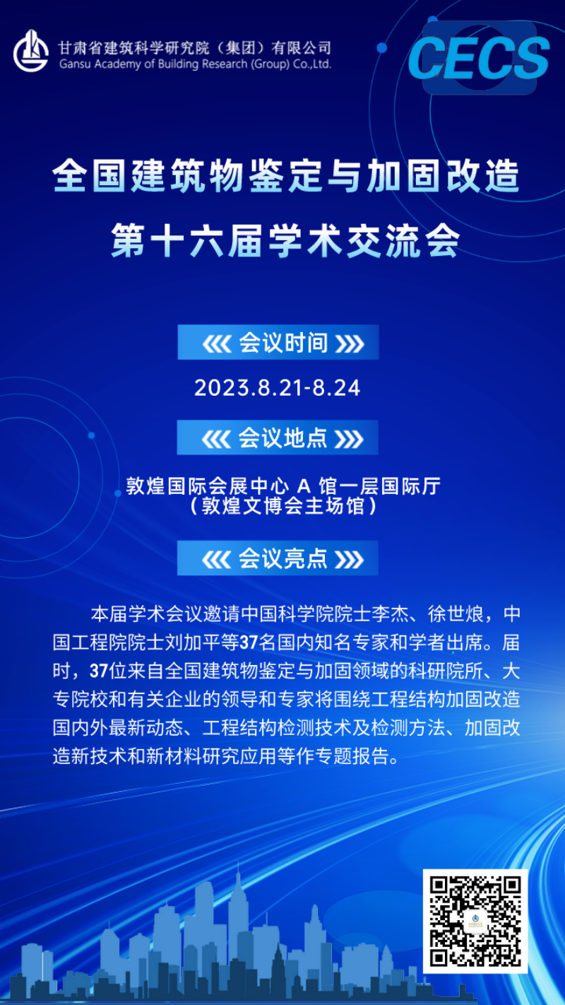 據(jù)悉,全國建筑物鑒定與加固改造學術(shù)交流會是我國建筑行業(yè)學術(shù)價值較高的專業(yè)性會議,每兩年舉辦一屆,上屆會議由清華大學承辦。甘肅建科院對本屆會議進行了認真籌備,將竭誠為業(yè)界專家搭建一個共同見證本行業(yè)技術(shù)發(fā)展成果、交流行業(yè)寶貴經(jīng)驗、探討本領域發(fā)展動態(tài)、展望領域前沿方向的專業(yè)學術(shù)平臺,為未來的學術(shù)研究和國際合作尋求新思維,拓展新路徑。