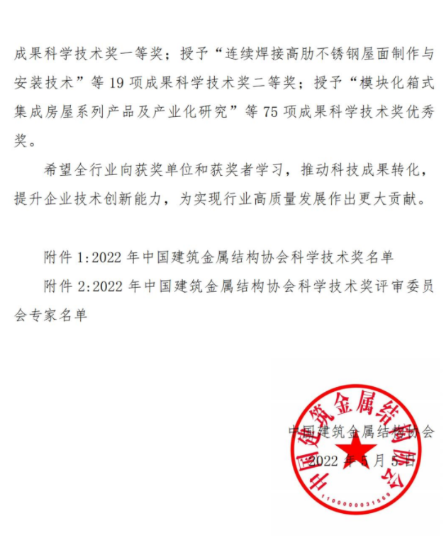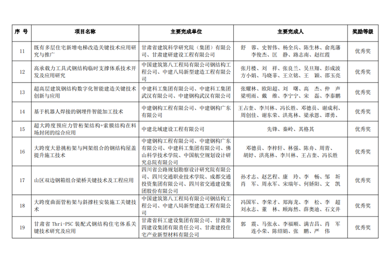 5月5日,由甘肅省建筑科學(xué)研究院(集團)有限公司巖土技術(shù)中心申報的“既有多層住宅新增電梯改造關(guān)鍵技術(shù)應(yīng)用研究與推廣”科研課題榮獲2022年度中國建筑金屬結(jié)構(gòu)協(xié)會科學(xué)技術(shù)獎優(yōu)秀獎,表明了國內(nèi)建筑鋼結(jié)構(gòu)行業(yè)對公司創(chuàng)新能力與技術(shù)水平的肯定與認可。