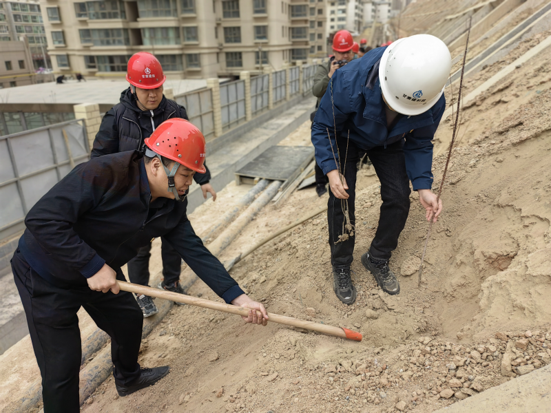 春回大地萬(wàn)物蘇,植樹添綠正當(dāng)時(shí)。3月15日下午,甘肅建科院建研建設(shè)公司黨支部依托九洲新華小區(qū)邊坡加固綠化項(xiàng)目,與項(xiàng)目甲方甘肅新華房地產(chǎn)公司黨支部開展支部聯(lián)建植樹節(jié)主題黨日活動(dòng)。兩單位領(lǐng)導(dǎo)班子成員、支部委員、團(tuán)員青年代表、勞務(wù)班組代表共計(jì)40余人參加了本次活動(dòng)?;顒?dòng)由甘肅建科院建研建設(shè)黨支部副書記孫藝珊主持。