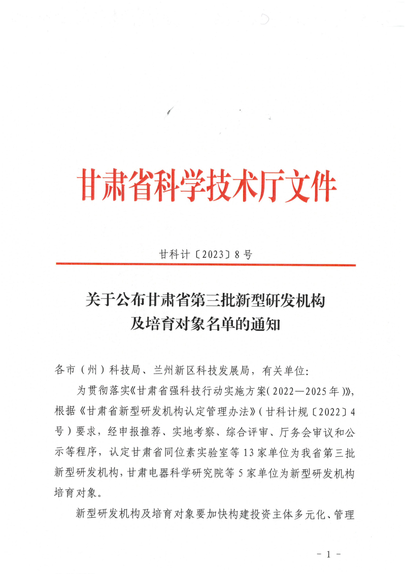 據(jù)了解,省級(jí)“新型研發(fā)機(jī)構(gòu)”是指在甘肅省內(nèi)注冊并運(yùn)營,聚焦科技創(chuàng)新需求,主要從事科學(xué)研究、技術(shù)創(chuàng)新和研發(fā)服務(wù),投資主體多元化、管理制度現(xiàn)代化、運(yùn)行機(jī)制市場化、用人機(jī)制靈活的獨(dú)立法人機(jī)構(gòu)。