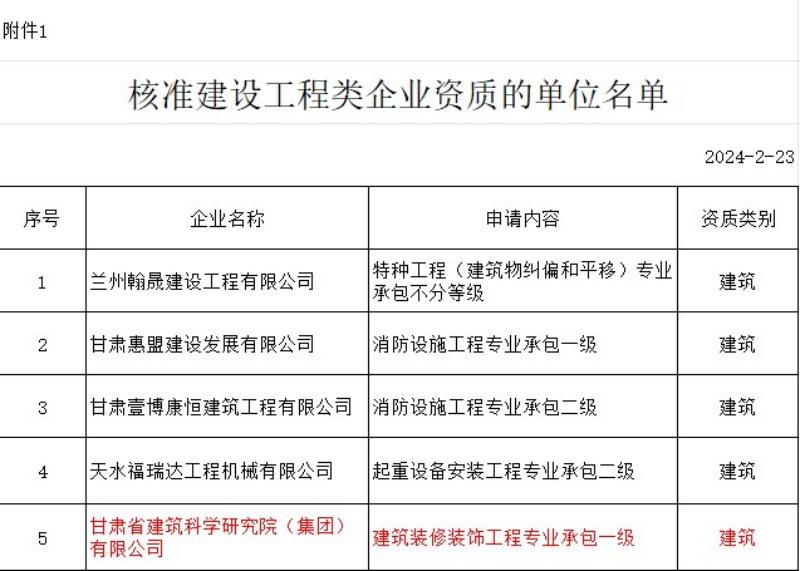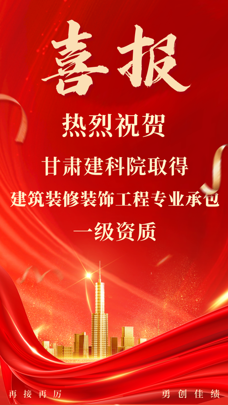 【喜迎職代會 奮進新征程】甘肅省建筑科學研究院(集團)有限公司取得建筑裝修裝飾工程專業(yè)承包一級資質