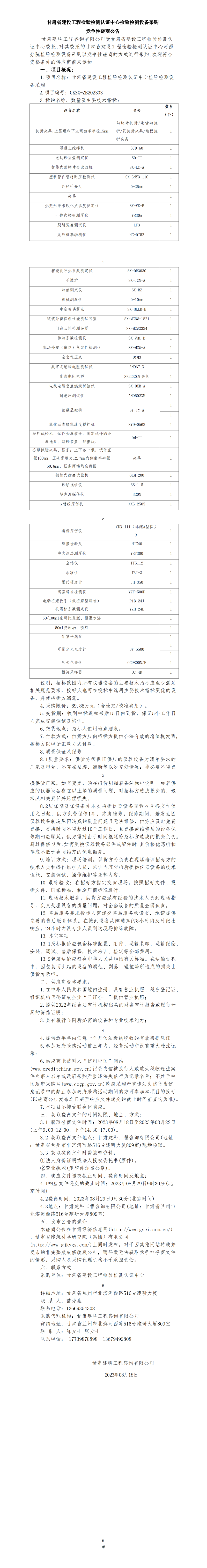 甘肅省建設(shè)工程檢驗(yàn)檢測(cè)認(rèn)證中心檢驗(yàn)檢測(cè)設(shè)備采購(gòu)競(jìng)爭(zhēng)性磋商公告