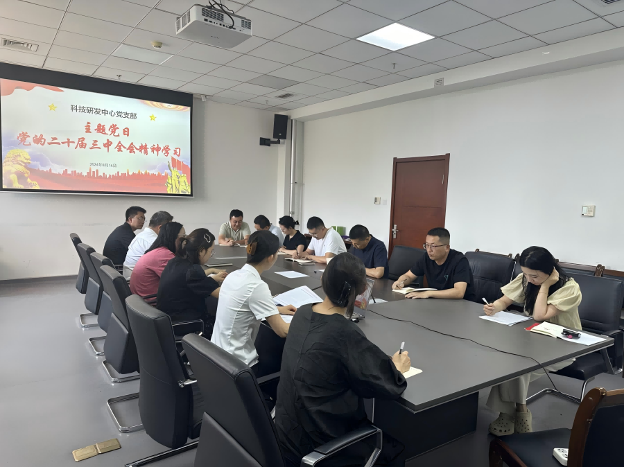 近日,科技研發(fā)中心黨支部組織開展“學(xué)習(xí)貫徹黨的二十屆三中全會精神 推動創(chuàng)新體制機(jī)制深化改革”主題黨日活動,傳達(dá)學(xué)習(xí)了黨的二十屆三中全會精神,全體黨員、入黨積極分子參加了學(xué)習(xí)。