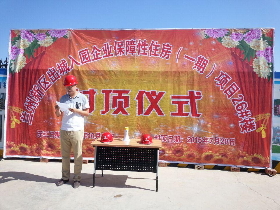 在建設(shè)單位、施工單位、監(jiān)理單位各方共同努力下,由科研院華蘭監(jiān)理公司承擔(dān)監(jiān)理的“甘肅建投蘭州新區(qū)保障性住房一期工程”項(xiàng)目26#樓主體結(jié)構(gòu)于2015年7月20日順利封頂。