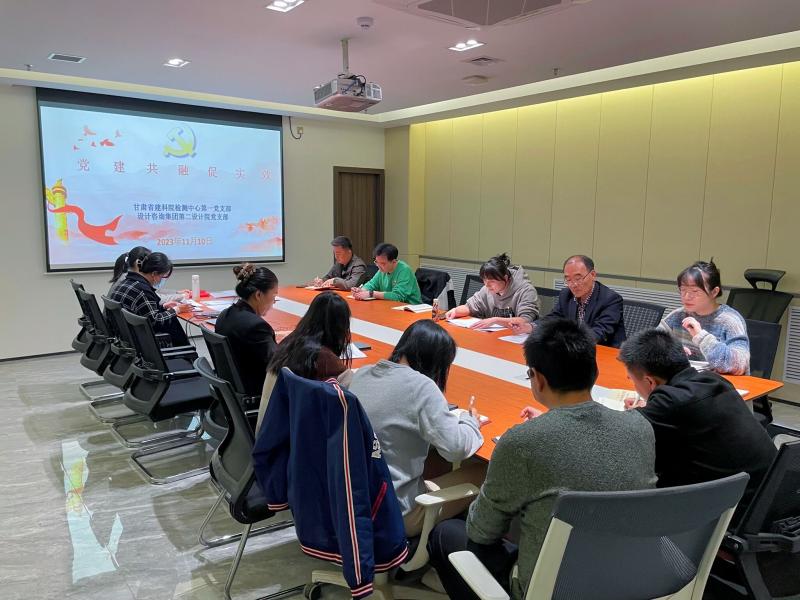 為深入開展學習貫徹習近平新時代中國特色社會主義思想主題教育,進一步推動黨員干部深刻領(lǐng)會“三抓三促”行動重要意義,提升黨建工作水平,加強黨建和生產(chǎn)經(jīng)營融入融通融合,實現(xiàn)黨組織優(yōu)勢互補,11月10日下午,甘肅建科院檢測中心第一黨支部與甘肅省建設(shè)設(shè)計咨詢集團有限公司第二設(shè)計院黨支部開展“黨建共融促實效”黨建聯(lián)學聯(lián)建主題黨日活動。雙方單位黨員代表、業(yè)務(wù)骨干代表共同參加了活動。