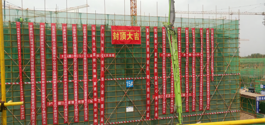 在各級(jí)政府領(lǐng)導(dǎo)的幫助與支持下,在監(jiān)理公司人員的認(rèn)真監(jiān)督與指導(dǎo)下,在各參建單位的共同努力協(xié)作下,經(jīng)過2個(gè)月的精心組織施工,該棟樓比總進(jìn)度計(jì)劃的封頂日期提前了26天,這也意味著該項(xiàng)目于8月底竣工的目標(biāo)得到了有力的保障,離積石山受災(zāi)群眾搬進(jìn)胡林家鄉(xiāng)集中安置點(diǎn)新房的日期更進(jìn)一步。
