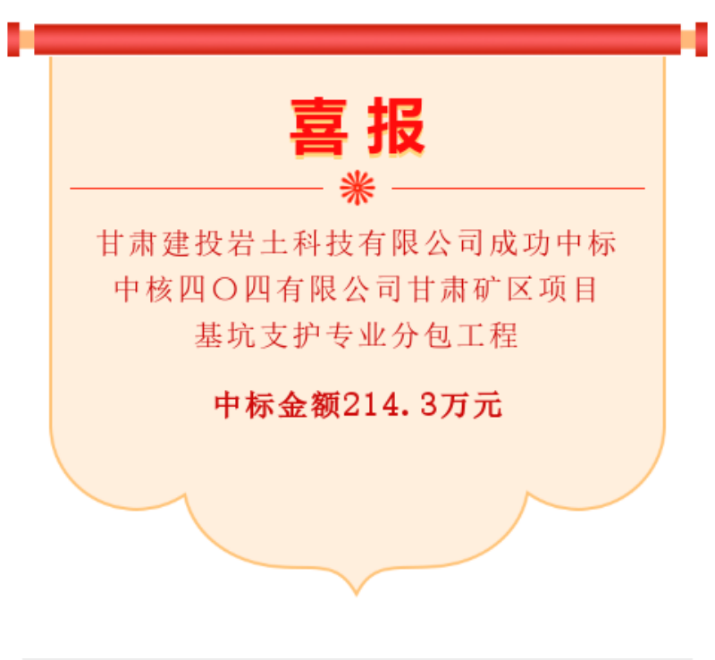 甘肅建投巖土科技有限公司成功中標中核四〇四有限公司甘肅礦區(qū)項目基坑支護專業(yè)分包工程