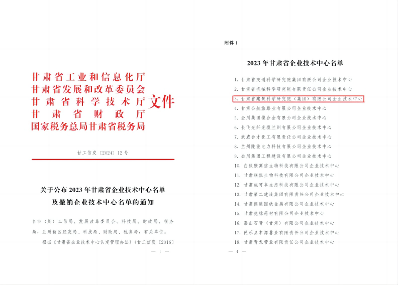 近日,從甘肅省工信廳獲悉,甘肅建科院成功獲批甘肅省企業(yè)技術中心。此次甘肅建科院獲批省級企業(yè)技術中心,是政府行業(yè)主管部門對公司創(chuàng)新能力及創(chuàng)新成果的肯定,代表著公司科技創(chuàng)新水平與科技創(chuàng)新實力處于省內行業(yè)領先地位,標志著公司品牌形象及綜合實力再上新臺階。