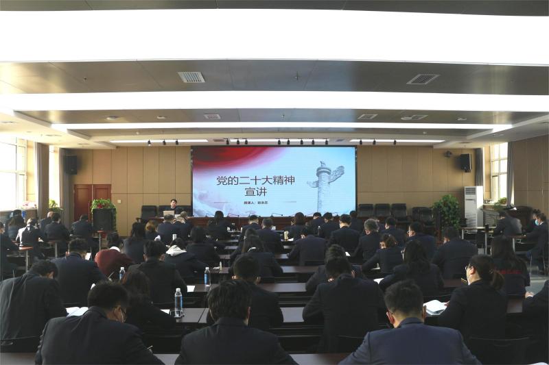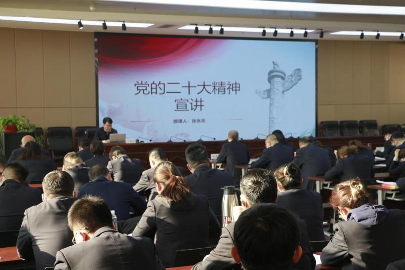 12月23日,甘肅建科院黨委書記、董事長張永志在建研大廈12樓為全司黨員干部職工宣講黨的二十大精神。公司領(lǐng)導(dǎo)班子成員、主管級干部和部分黨員共120余人參加了會議。