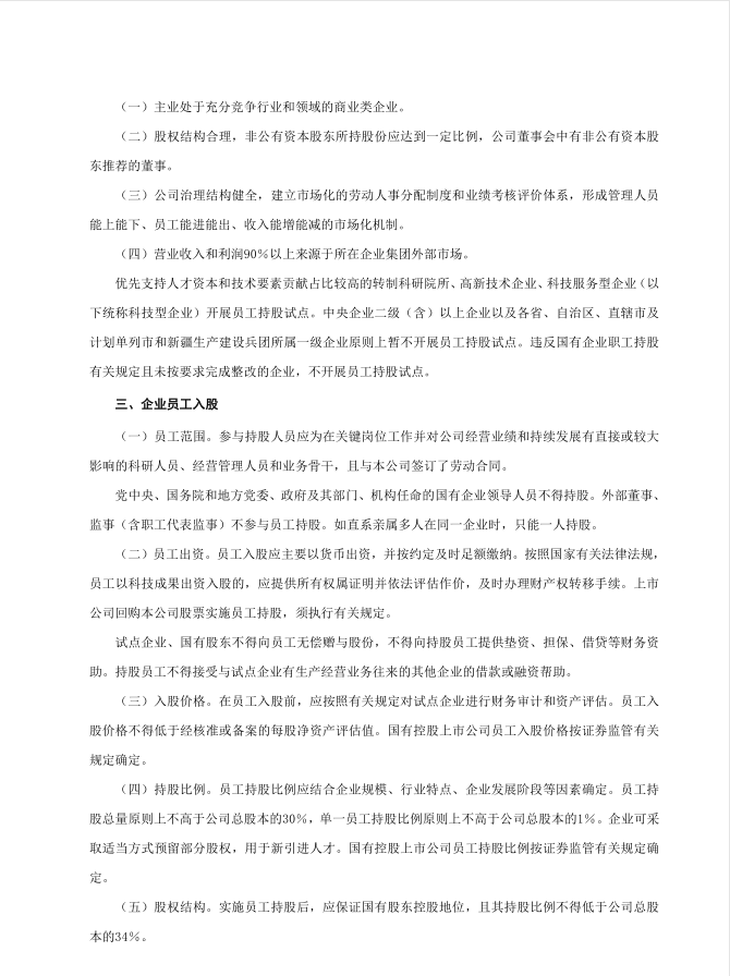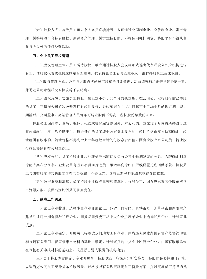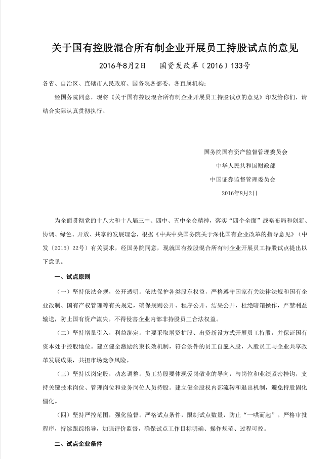 關(guān)于國有控股混合所有制企業(yè)開展員工持股試點(diǎn)的意見