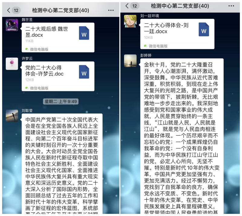 為全面學(xué)習(xí)宣傳貫徹黨的二十大精神,引導(dǎo)職工將黨的二十大精神轉(zhuǎn)化為指導(dǎo)實(shí)踐、推動(dòng)工作的強(qiáng)大動(dòng)力,檢測中心第二黨支部近日開展“學(xué)習(xí)二十大 助力新征程”主題黨日活動(dòng),整理二十大相關(guān)資料利用視頻會議進(jìn)行學(xué)習(xí),同時(shí)結(jié)合線下自學(xué),黨員和積極分子撰寫了學(xué)習(xí)心得感悟35篇。