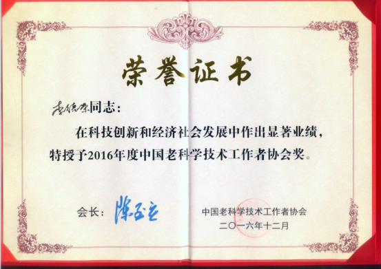 同時,李德榮老總在甘肅省老科學技術工作者協(xié)會的推薦下,獲得2016年度中國老科學技術工作者協(xié)會獎,這是我省土木建筑領域獲得的唯一獎項。