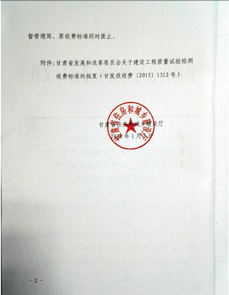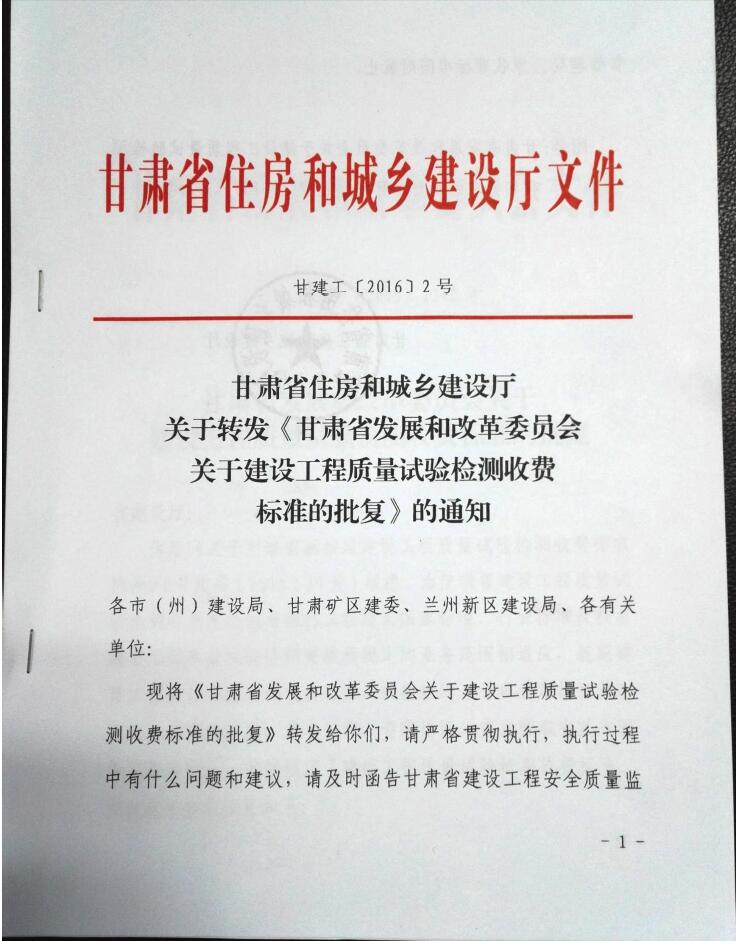 甘肅省住房和城鄉(xiāng)建設(shè)廳關(guān)于轉(zhuǎn)發(fā)《甘肅省發(fā)展和改革委員會(huì)關(guān)于建設(shè)工程質(zhì)量試驗(yàn)檢測(cè)收費(fèi)標(biāo)準(zhǔn)的批復(fù)》的通知