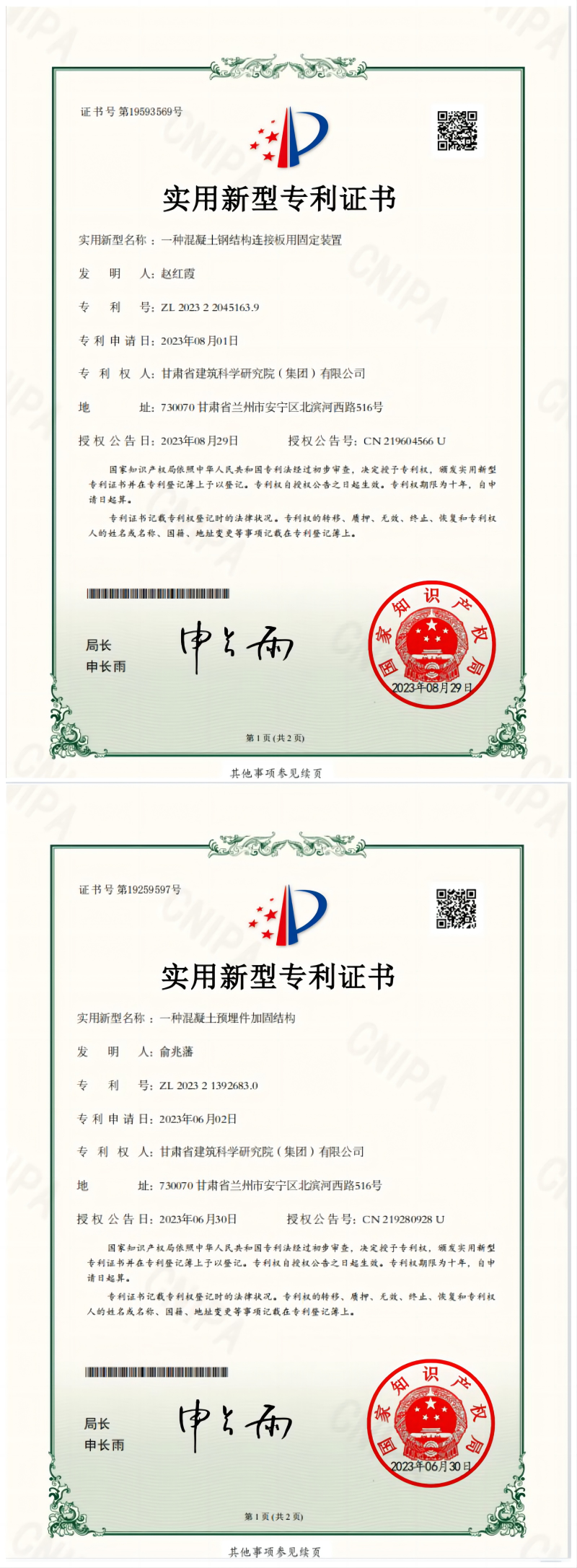 兩項實用新型專利分別涉及鋼改造技術和結構加固預埋件連接技術,有利于實現(xiàn)安裝成本的節(jié)約和提高預埋深度的準確性。